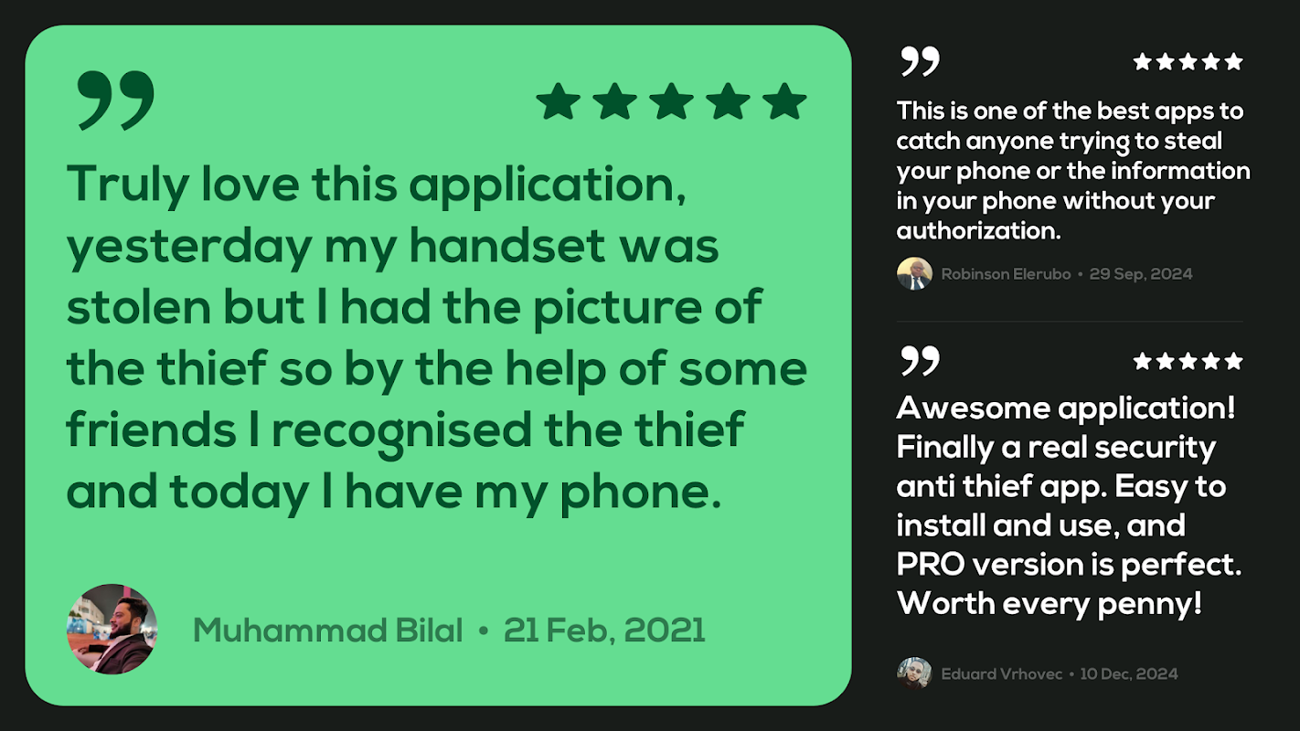 保护您的手机——将窃贼拍摄的照片、视频和位置信息直接发送到您的收件箱。