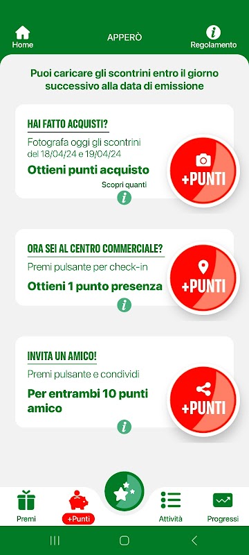 - 上传购物收据照片赚取积分和投注;