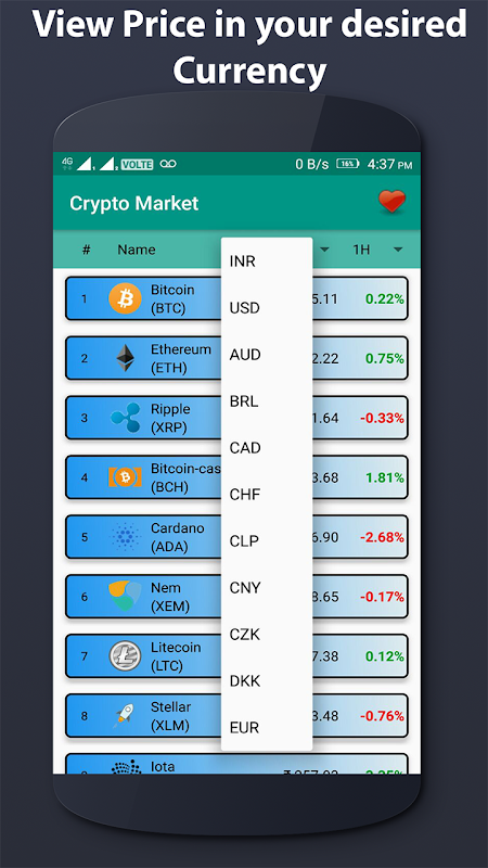 ✓ Provide option to mark your favorite coin as favorite so that you can monitor desired coins market quick and easily.