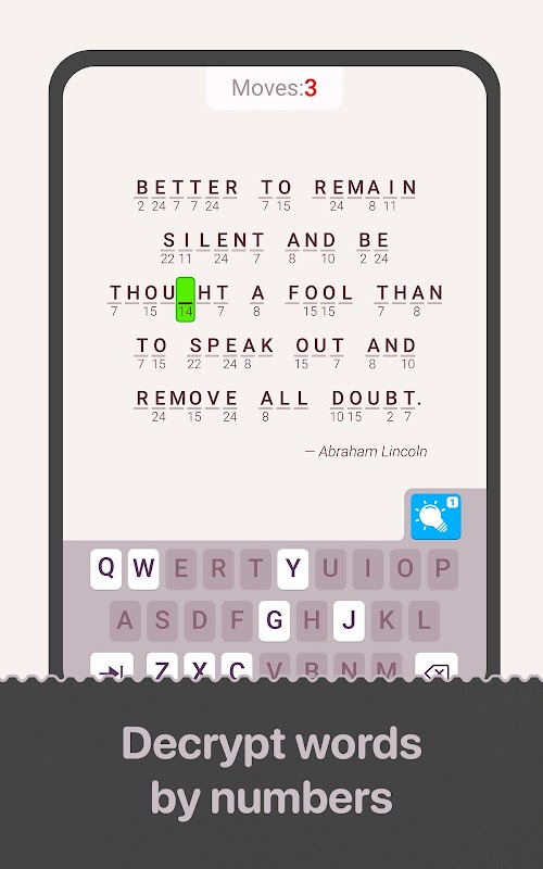Cryptogram: Word Brain Puzzle 是一款字母解码游戏,当你试图想出密码的答案时,这些神经元的发射速度比你说的快。解密谜题,弄清楚这些数字和字母的真正含义是什么。
