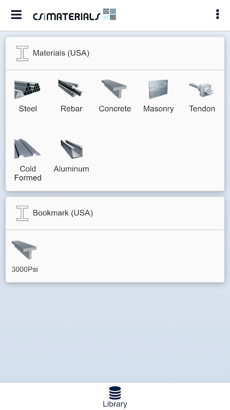 CSiMaterials是一款应用程序,包含结构设计的建筑材料。它允许根据各种材料属性搜索,分类和查看材料。
