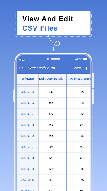 CSV Viewer – CSV File Viewer app can display the data in a table format with columns and rows, allowing users to easily view and analyze the data. The app also provides various features such as sorting, filtering, and searching, enabling users to manipulate the data and extract meaningful insights from it.