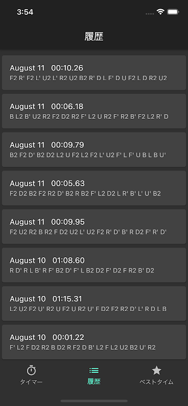 The measured times can be viewed in order of fastest time and date.