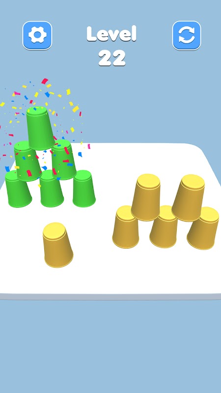 匹配相同颜色的杯子,完成堆叠关卡!叠杯游戏是最令人满足的放松游戏。