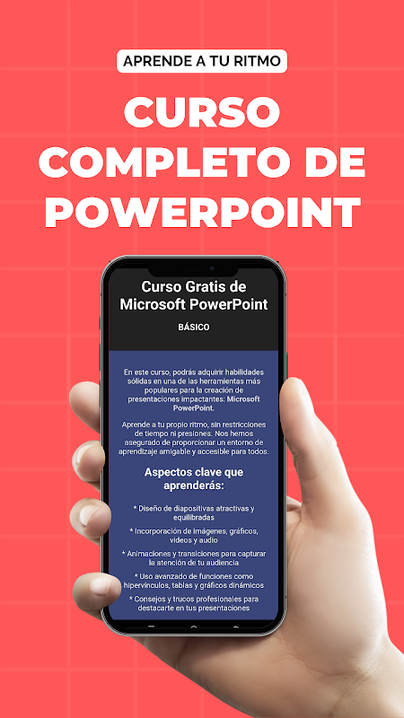 我们的完整 PowerPoint 课程提供个性化的学习方法,让您能够按照自己的节奏进步。无论您是初学者还是经验丰富的用户,我们的应用程序都会为您提供分步课程和互动练习,以便您逐步提高技能。忘记传统和限制性的课程;通过我们的应用程序,您可以决定何时何地学习。
