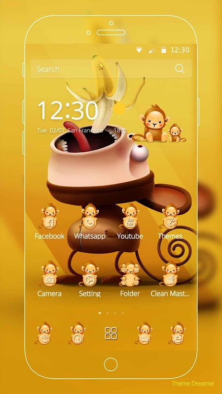 可愛的猴子手機主題與酷的瘋狂猴子活壁紙和卡哇伊風格的圖標