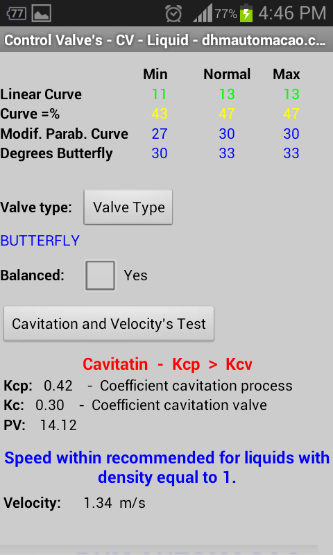 - Application suggests a CV, and you will determine it from Valve Type (BUTTERFLY VALVE, BALL, ECCENTRIC PLUG, GLOBE AND ANGULAR) and its diameter.