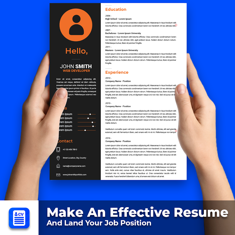 在几分钟内建立一份专业的简历。获得面试是一场与工作的竞赛,制作一份有效的简历并获得你的工作职位。作为求职者,你必须总结你的资历和职业声誉。撰写简历是一项既累又耗时的任务。使用,您将能够快速创建一个突出您的优势的文档。是专业的简历制作应用程序和免费的简历制作应用程序,适用于新生。