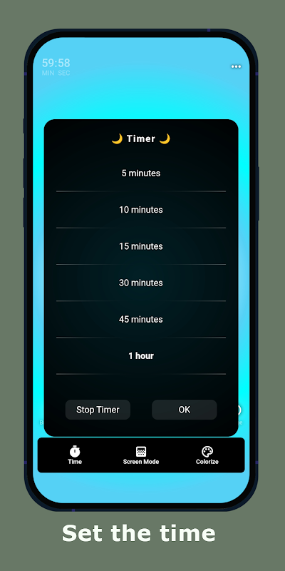 ✔️️ 设置您希望绿松石灯在手机上保持活动状态的时间。