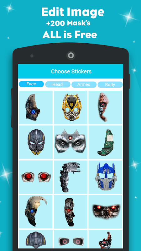 Now you can makeup Cyborg robot and machine and add many sticker’s simulator virtual to your insta photos sticker ,you makeup artistic and start special cosplay photo face swap manipulations is incredibly easy, also this app equipped with a sticker machine and magical live photo which makes pattern you very similar to sweet Cyborg roboolux Camera machine Editor,Say Goodbye to Photoshop when you can edit your own photos with the best and the simplest application of virtual make*up around the world,