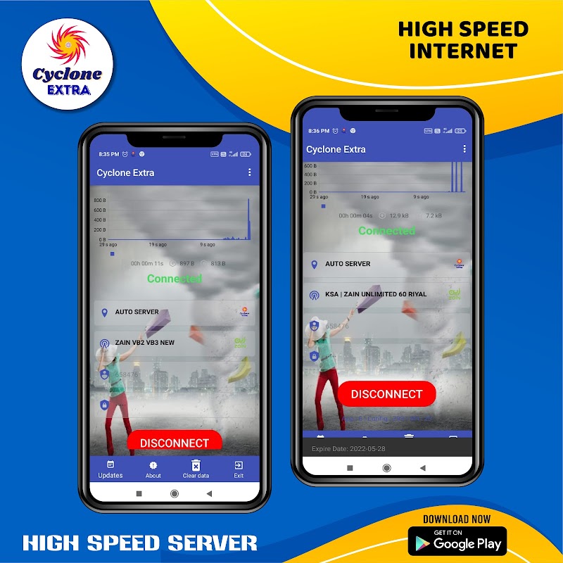 Cyclone Extra Paid Version, access 100+ servers in 60+ countries, Enjoy safe and private access with 1500 free and fast unlimited Supper Speed VPN servers that you can access as much as you like, can stream, play games, and browse online without restrictions with Cyclone Extra.
