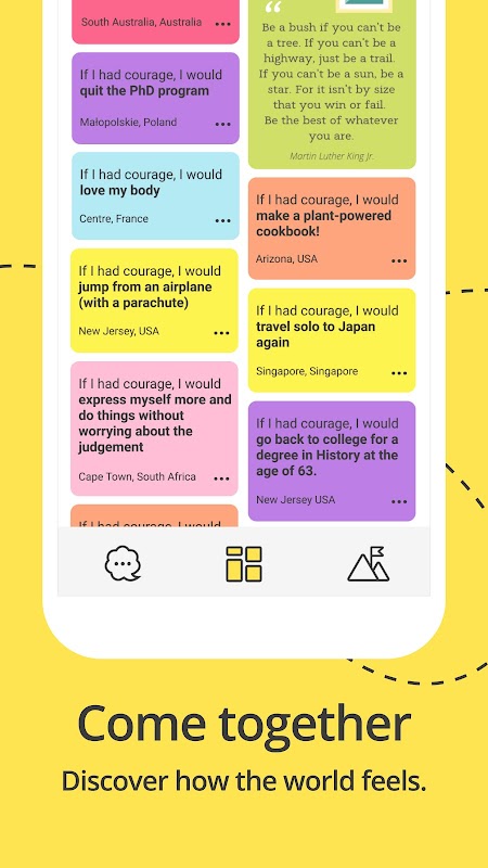 它从一个发人深省的每日填空问题开始。用“你”填空即可。然后看看世界其他地方的反应!这是一个受到启发、振奋和鼓励积极思考的机会。自我反思可以很有趣......和社交!