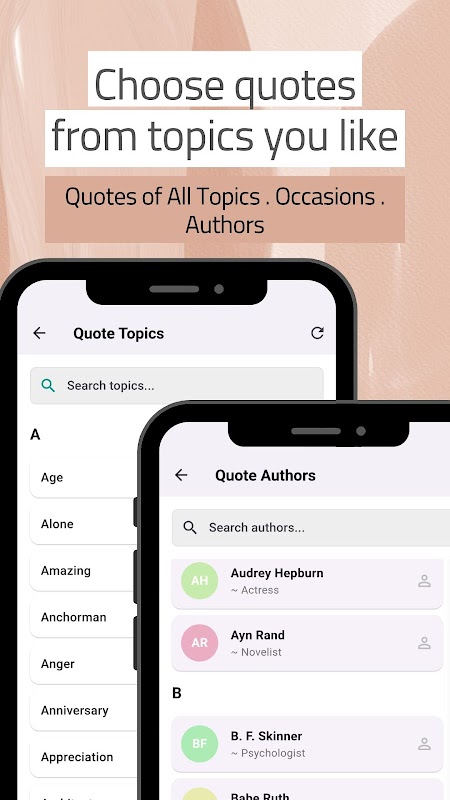QuoteForever App 不仅仅是一款普通的名言收集应用。它是一个全面的名言平台,您可以在其中探索丰富的主题、作者和职业名言库。无论您是学生、教师、企业家、艺术家,还是仅仅是热爱阅读励志文字的人,这款应用都能为您提供触手可及的精选智慧。