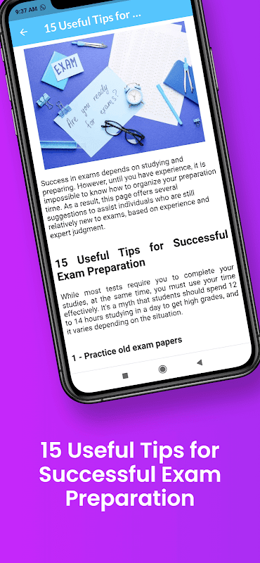 寻找考试准备技巧?不要再看了!此应用程序包含有用的提示和策略,可帮助您在考试中取得优异成绩。这个网站拥有提高学习成绩所需的一切,从更聪明地学习到使用记忆技巧。