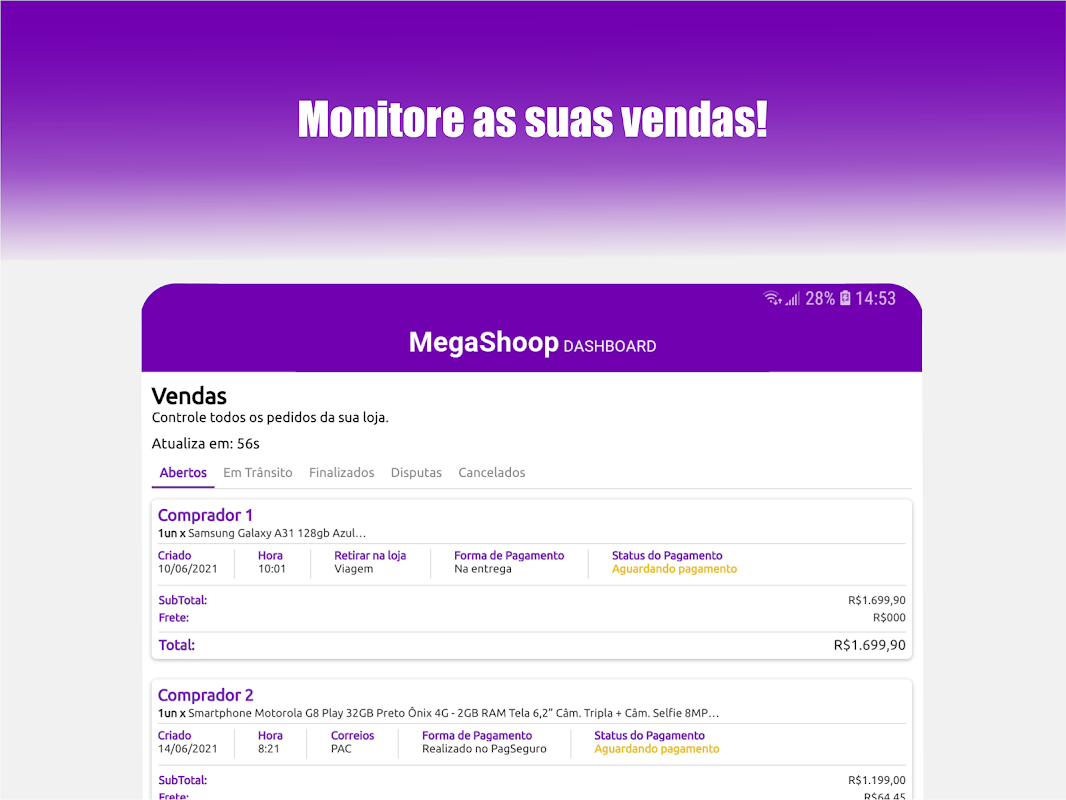 O aplicativo MegaShoop DashBoard foi desenvolvido para você que possui uma loja online no MegaShoop.