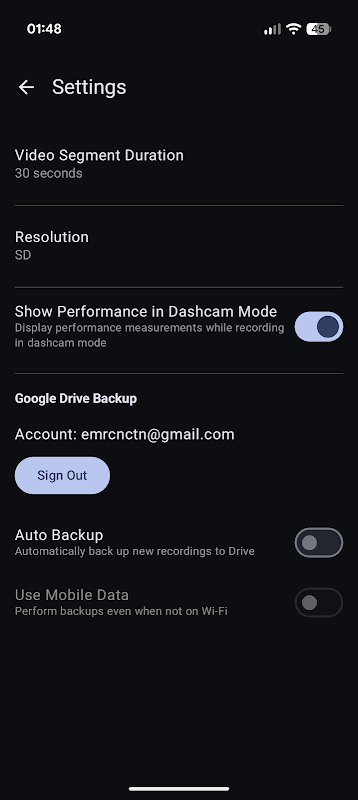 • 分段录制:不错过任何精彩瞬间。应用程序可以根据您的设置,分段录制您的行程,并可选择不同的录制时长和分辨率(分段时长会根据您的使用情况而变化,例如将应用程序置于后台运行)。