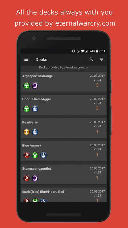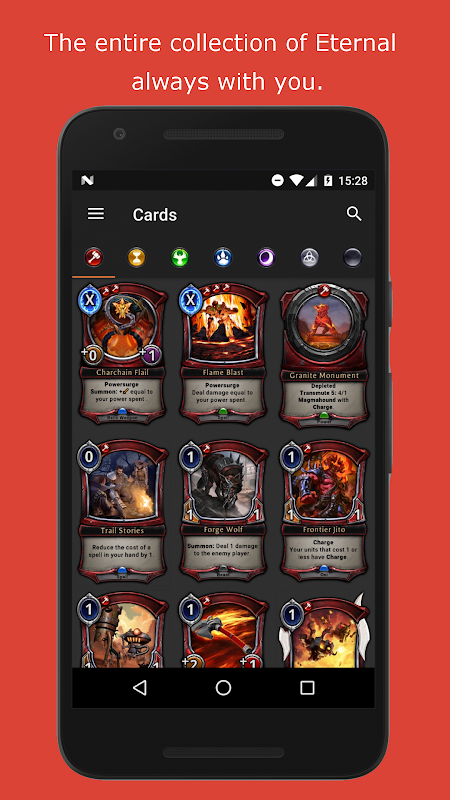Database for Eternal allows the user to have the world of Eternal Card Game always in your hand.