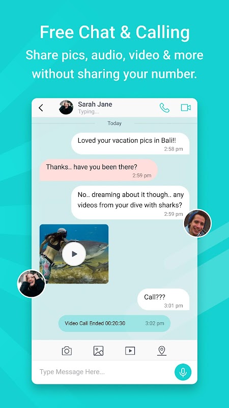 5.安全:Dately每天提供免费的音频和视频通话,因此您无需亲自见面之前就交换电话号码并验证日期。