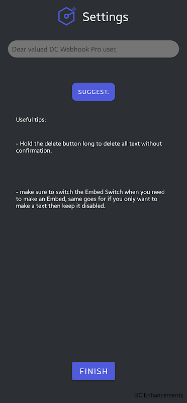 欢迎使用 DC Webhook Pro,这是简化 Discord 通信的终极应用程序。使用我们的应用程序,通过 Webhooks 向 Discord 发送消息和嵌入从未如此简单。您只需要一个 Webhook URL,就可以开始了!