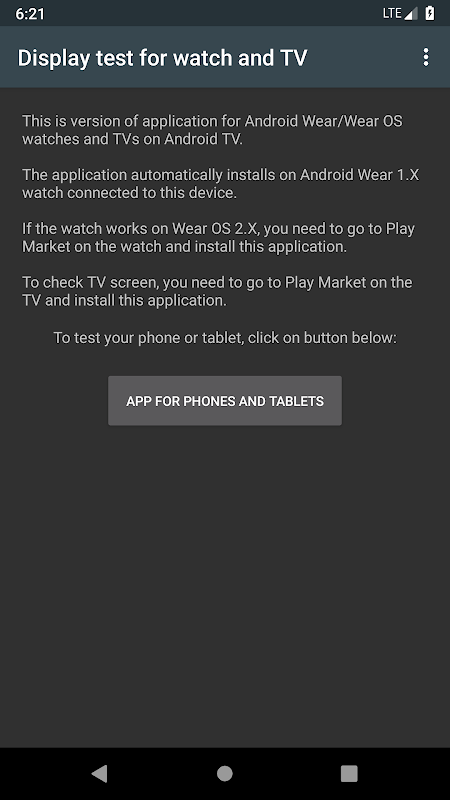 该应用程序旨在检查手表和电视屏幕是否有损坏的像素。