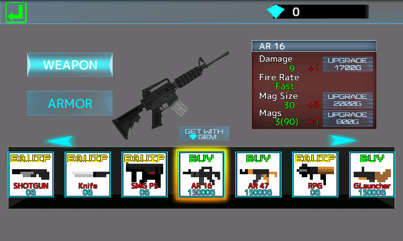 Various weapon like Machingun, Shotgun, Deagle, Grenade, RPG, Knife, AR.