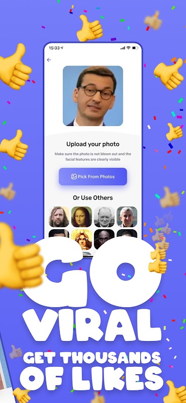 Upload a photo or video of a selebrity or your boss, choose a face animation template and we'll create a funny video for you. Surprise your friends in just a few taps!
