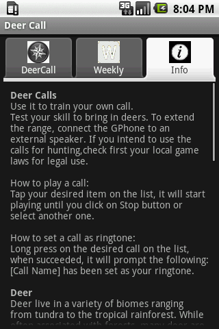 Deer call is a handy app with a variety of high quality and most popular and effective deer call sound. Use it to train your own hunting call or test your skill to bring in deer. You can also set your favorite call to your ringtone. Now added Solunar Weekly rating for best hunting days.