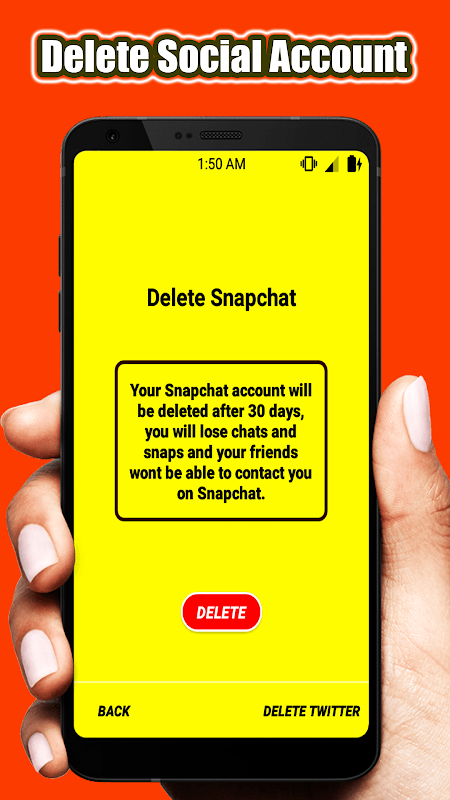 随着社会删除帐户您可以删除Facebook或Instagram的删除或删除snapchat或删除Twitter的,如果你想要更多的社交网络帐户查看我们以前的应用程序“删除账户”。