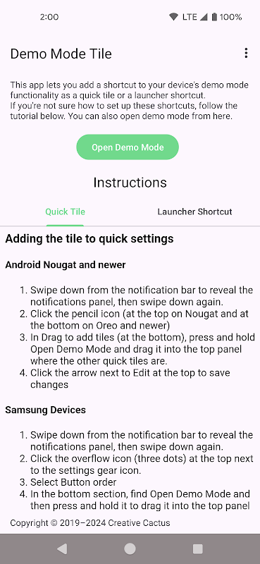 • 该应用程序只是一个快捷方式 - 演示模式由 Android 操作系统提供