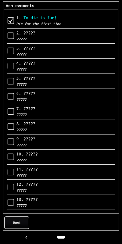A solo indie-dev aims to bring an old-school style to modern day Android devices. This is accomplished with an easy to understand interface, a few iconic buttons, and several information screens. Players are empowered to navigate a proceedurally generated world full of danger and treasure.