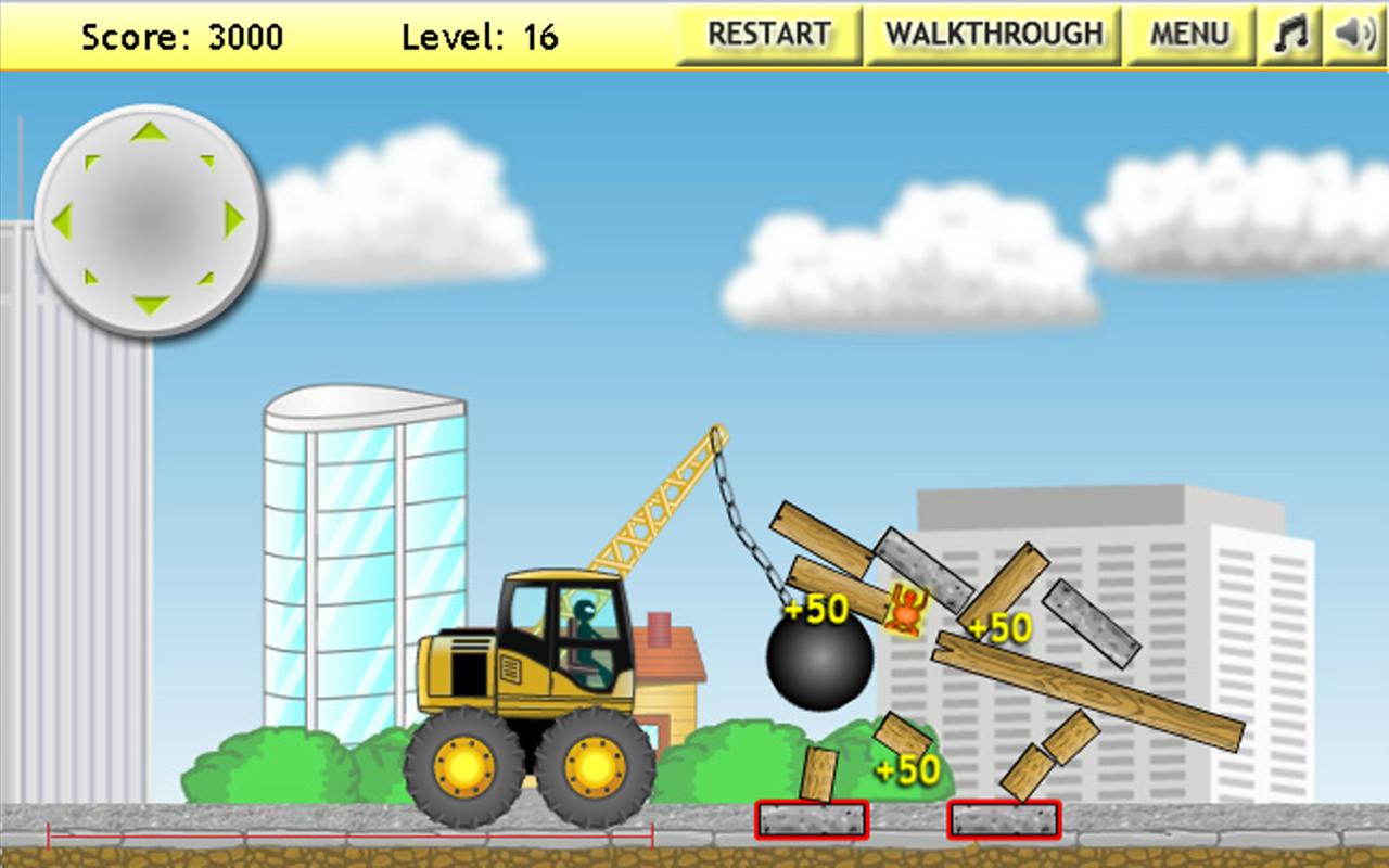Drive with your wrecking truck, demolish buildings and destroy the statuette!
