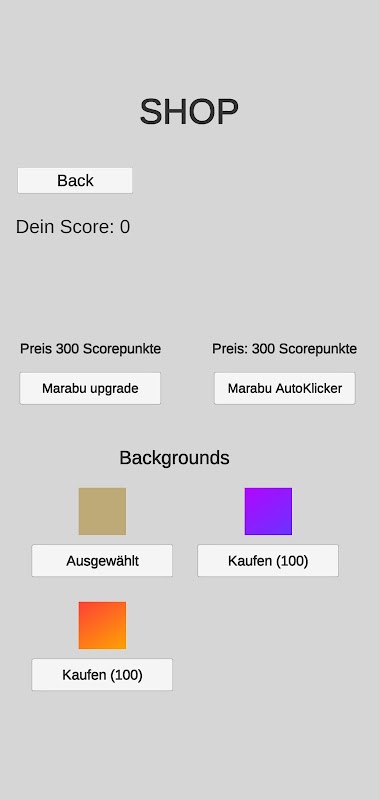 Dieses Spiel ist das aller erste Marabu Spiel. Es beinhaltet nicht nur den Marabu als Hauptcharacter, sondern auch noch einen Shop. Vom Spiel Prinzip ähnelt es dem Cookie Clicker.