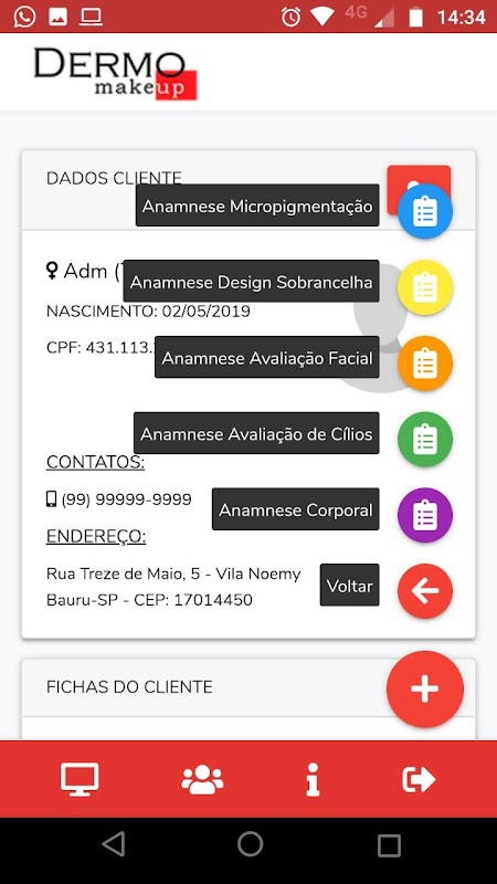 O aplicativo oferece gratuitamente: cadastro de clientes, fichas de anamnese e tabela de acompanhamento dos atendimentos realizados.