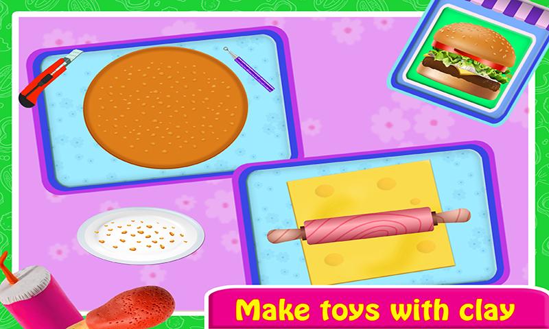 用粘土设计和建造是一个独特的粘液玩具制作模拟器游戏的女孩。如今,越来越多的小男孩和女孩想要玩蓬松的粘土和柔软的粘液。他们会用粘土来设计他们喜欢的一切。今天,在我们全新的女孩粘土玩具游戏中,你将有机会用粘土来设计一些东西。在粘土玩具制作游戏的开始,来选择你喜欢的东西。我们为您设计汉堡包,小房子和玩具车,并用粘土制作。如果你喜欢汉堡和三明治,那么从烹饪项目汉堡开始。首先,来选择你需要使用的颜色。我们将在选择栏中向您展示粘液制造厂工厂左侧的颜色。你需要在正确的区域选择相应的区域来开始玩具制作过程。设计汉堡包作为专业设计师和装饰师。在面板上制作一块粘土。用刀切割,然后在设计中逐步揉搓几次圆形,用粘土建造。
