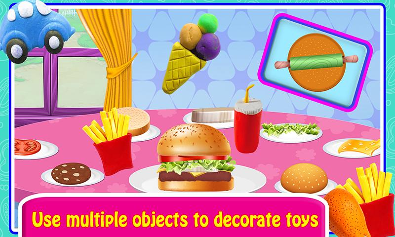 把一些小碎片放在粘土上,因为汉堡碎片带有你的装饰和设计技巧。之后,来设计内层。选择一个红色粘土或多种颜色的层,并使其成为圆形的独角兽彩虹粘液制作游戏。下一步,你需要设计绿色蔬菜层。最后,它将是鸡肉和火腿部分的一层。你需要使用这些工具在鸡泥上做一些洞,并将火腿上的疯狂蓬松粘土部分切成几个小方块。如果您选择设计小房子或玩具车,您可以使用相同的方法设计您的建筑技巧设计和粘土建造。在游戏结束时,来逐层组装汉堡包,糖果屋或玩具车,并用其他食品装饰餐桌。最后向我们展示你的彩虹粘土制造商diy设计与完整的装饰。