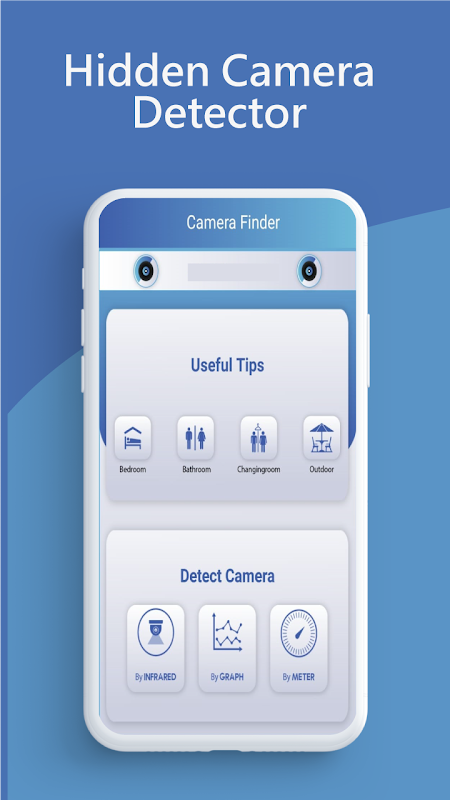 This Hidden Camera Finder easily detects hidden camera and hidden devise through phone sensor. Use your smart phone to detect hidden camera finder and spy hidden camera. This app protects you from hidden devices through your app which can be anywhere around you. Hidden camera finder app is for instance bedroom shower window box, focal point camp locator looking the part or changing room reflect. anti-spy x cam Simulator app must be in your smart phone. The hidden camera detector app having low installing size and amazing interface and easy to use it. You can download our new hidden camera finder and secret camera detector app which is available on play store for free.