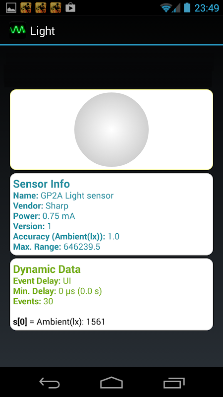 List all sensors available on the device along with their current values and provides (when available) a simple application for each sensor.