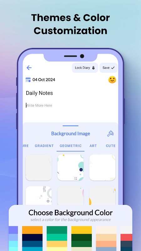 可定制的背景:使用各种背景颜色选项来个性化您的日记,以适合您的风格。