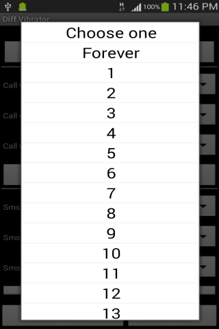 To configure, tap Start to start the Diff Vibrator Service. Select the different vibration settings for phone call and SMS. Call/SMS vibrate pattern allow you to set 'Forever' or a fixed period of time for vibrating before it will stop. In addition, to facilitate quick stop of the vibration, a widget is added. Add it to your Home screen and then when smart-phone keep vibrating because you set the pattern to 'Forever', tap the widget to stop vibration immediately.