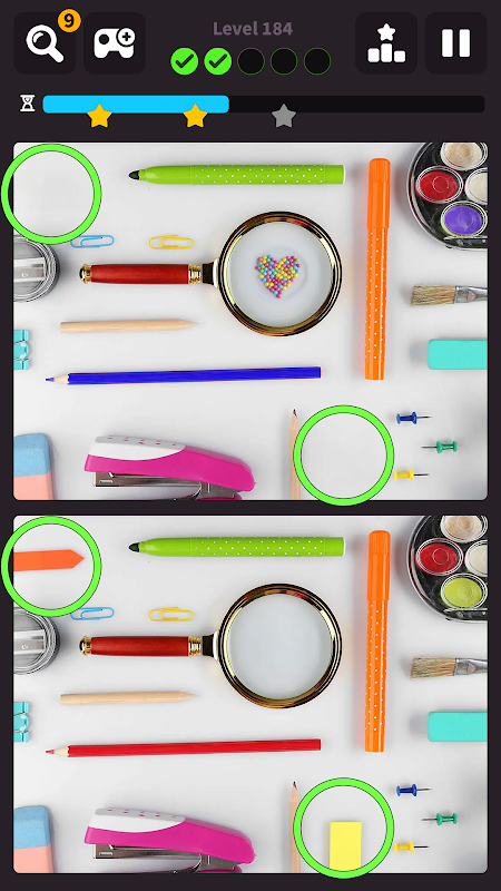这是一款正宗的益智游戏,您必须在两张看起来相同的图片中找到 5 个隐藏的差异。