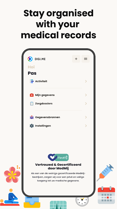 • 收集 – 使用 DigiD 从全科医生、医院和其他护理提供者处导入记录