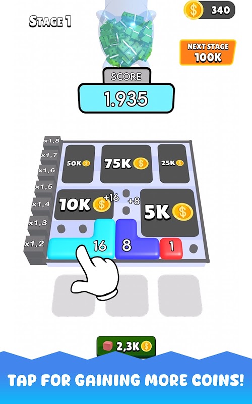 放置您的数字按钮并开始获得硬币!