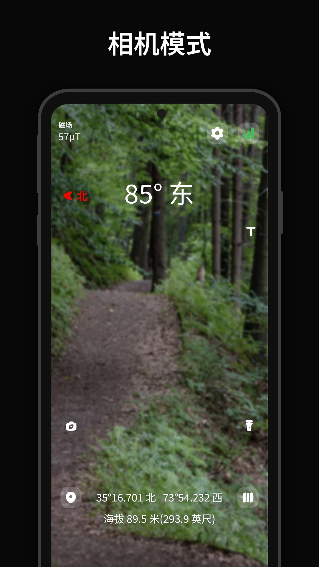 • AR模式 – 透过相机叠加指南针数据,更直观。
