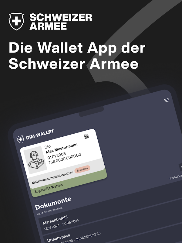 DIM 钱包是面向军人 (AdA) 的移动应用程序。它使 AdA 能够以离线和数字方式提供个人军事文件。借助 DIM 钱包,AdA 可以在工作前、工作中和工作后无纸化地识别自己的身份。