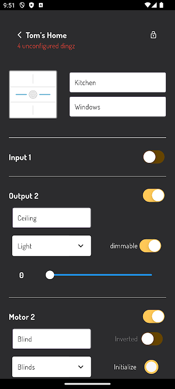 - 使用密码保护家中的所有 dingz 通过单击 dingz,您将能够配置其输出并直接通过应用程序进行测试。简单又容易。