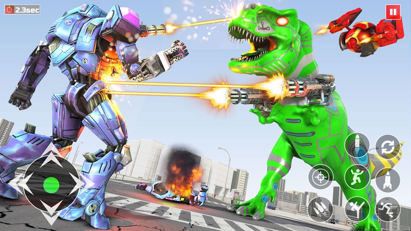 A robot battle has been initiated for the hold of Miami city. Get into dinosaur robots car transformation game and Dino robot transform game to come up with dino robot car who can change into transform robot games. Get superpowers for robot transforming games because you have to fight with a monster dinosaur robot transformation game that is causing trouble in the robotic city in robot shooting games. Give hope to the people of Miami city by getting fighting skills from the dino robot game and you will face the super robot war of modern bike robot games, super robot transform into a dinosaur, dragon, lion, crocodile robot, etc in air robot shooting games. It is the grand robot war game of real transform robot fighting games. You have multiple players like flying car transformation which is one of the best in offline robot shooting Games & robot fighting games. Become the leader of the grand robot war shooting game to enhance your expertise in the dino robot transform game.