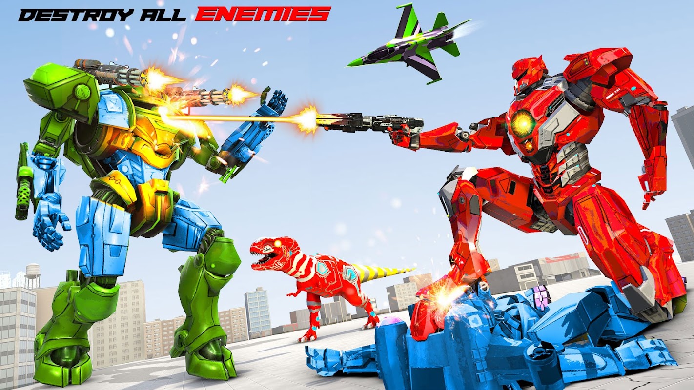 Install the grand robot war games to check our offline robot transforming game with different missions of flying robot car transformation battle games which empowers the robotic player with matchless shooting powers in robot fighting games. In the flying dragon robot car transforming Game, you have a grand hero in the form of wild dino robot games which have the support of police flying car transmute shooting to get the car transform robot features in robot fighting games. The super car transformation battle in real robot transform games adds huge powers of car shooting games which you can use in the way as you desire to shoot at flying cars in robot battle games.