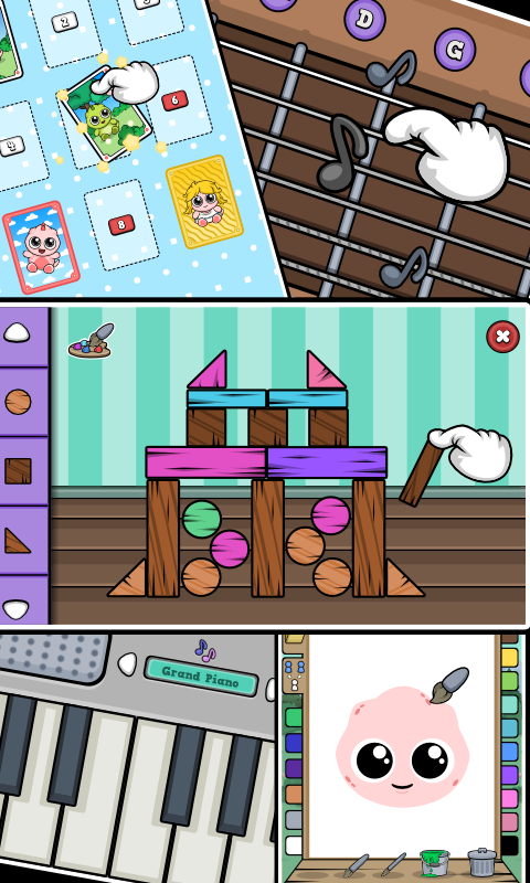 Music: Create music with the virtual instruments such as: piano, drums & guitar.