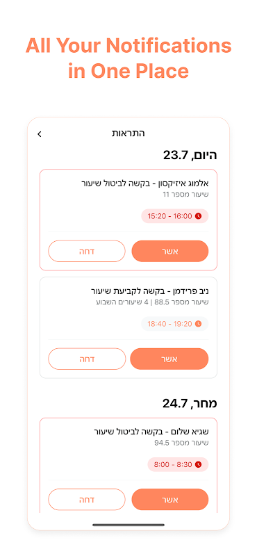 再也不会重复预订或错过课程了!学生可以直接通过应用程序选择可用的时段,消除来回沟通的麻烦。