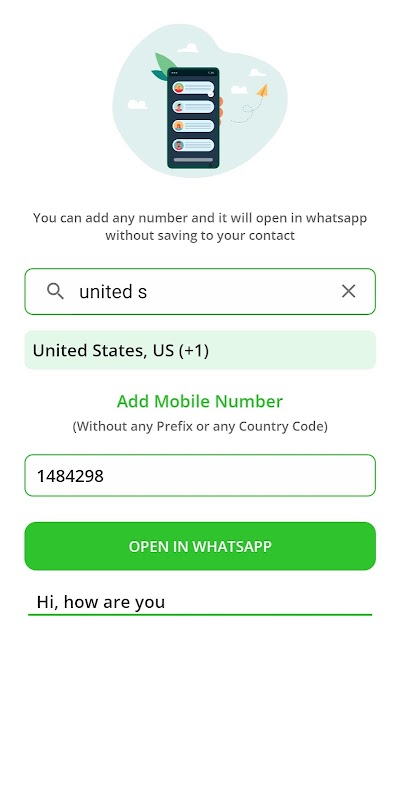 DirectChat 打开 Whatsapp 而不保存在联系人中